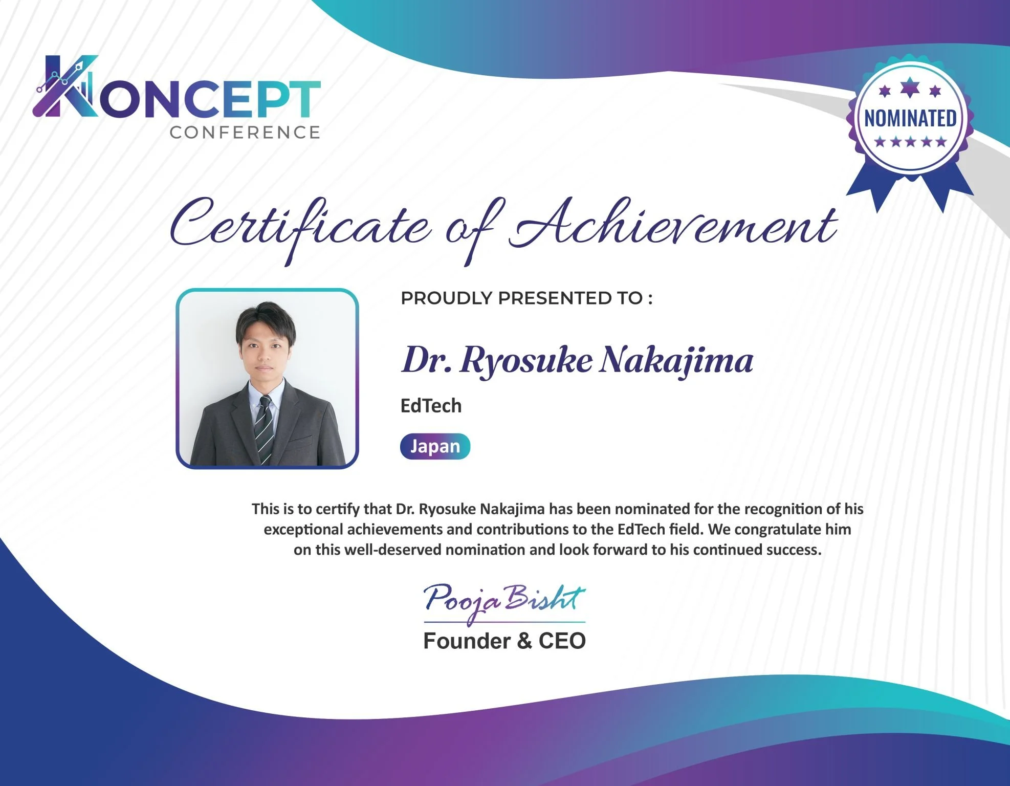 ProfBridge Commons is proud to share that its Founder, Dr. Ryosuke Nakajima, has been nominated for the Academic–Industry Impact Award – EdTech (Japan) at Tech Horizons 2030, hosted as part of Koncept Conference, Dubai.